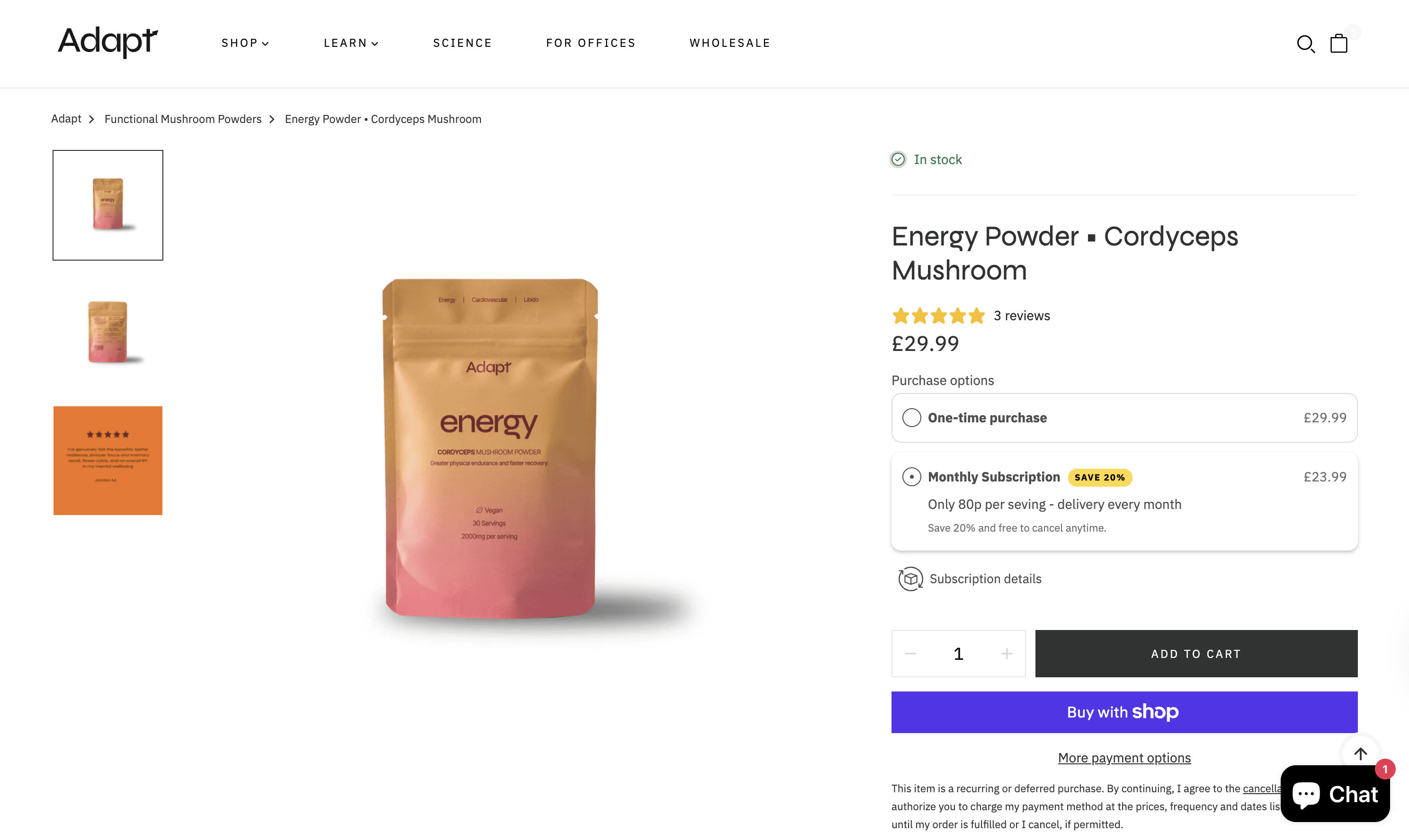 Website Product Page / Adapt Drinks